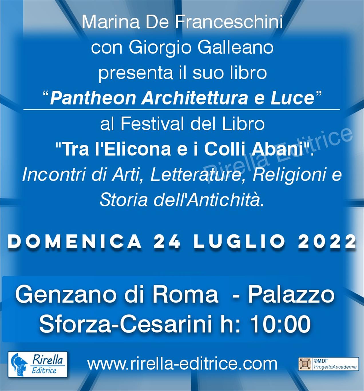 Marina De Franceschini with Giorgio Galleano presents her book "Pantheon Architecture & Light" at the Festival del Libro "Tra l'Elicona e i Colli Abani". Incontri di Arti, Letterature, Religioni e Storia dell'Antichità.