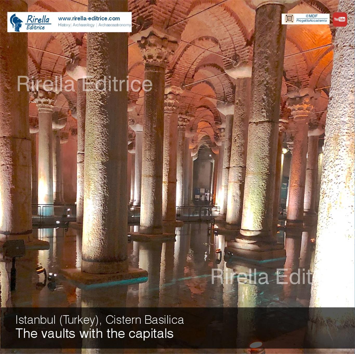 The Basilica Cistern measures 140 x 70 meters and has a total of 336 columns about 9 meters high, with Doric or Corinthian capitals and shafts made of marble or granite. There are fragments of architraves which were shaped to transform them into columns.