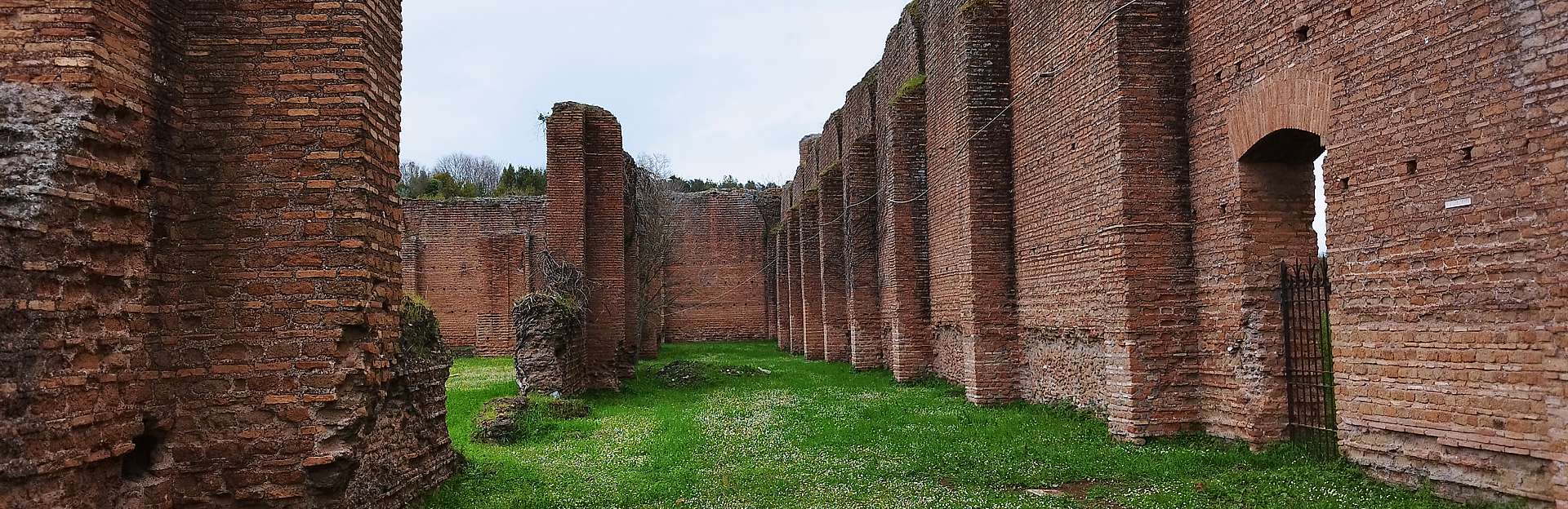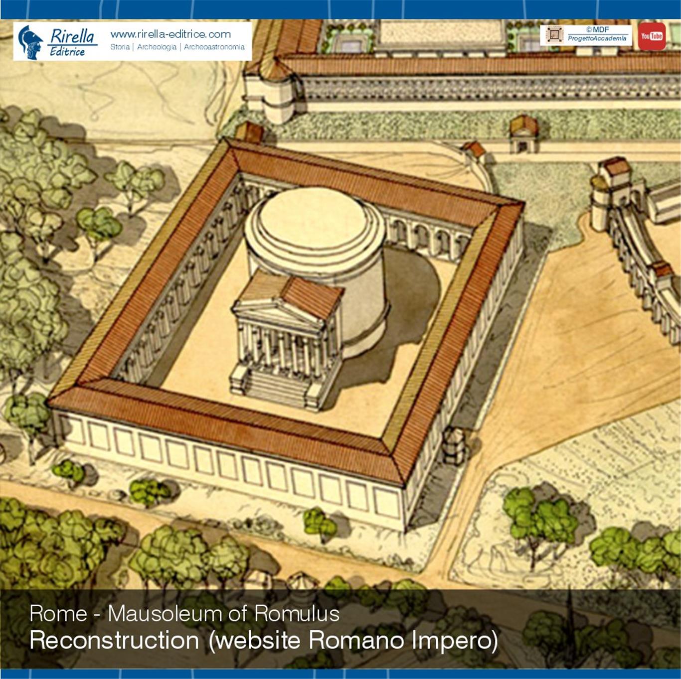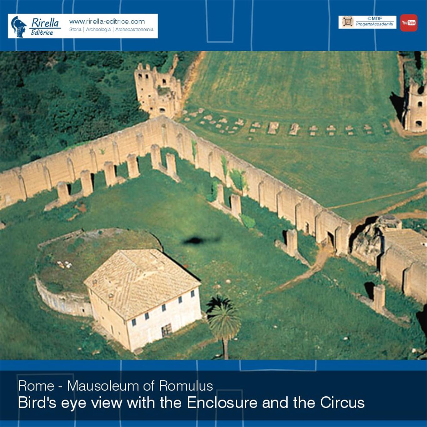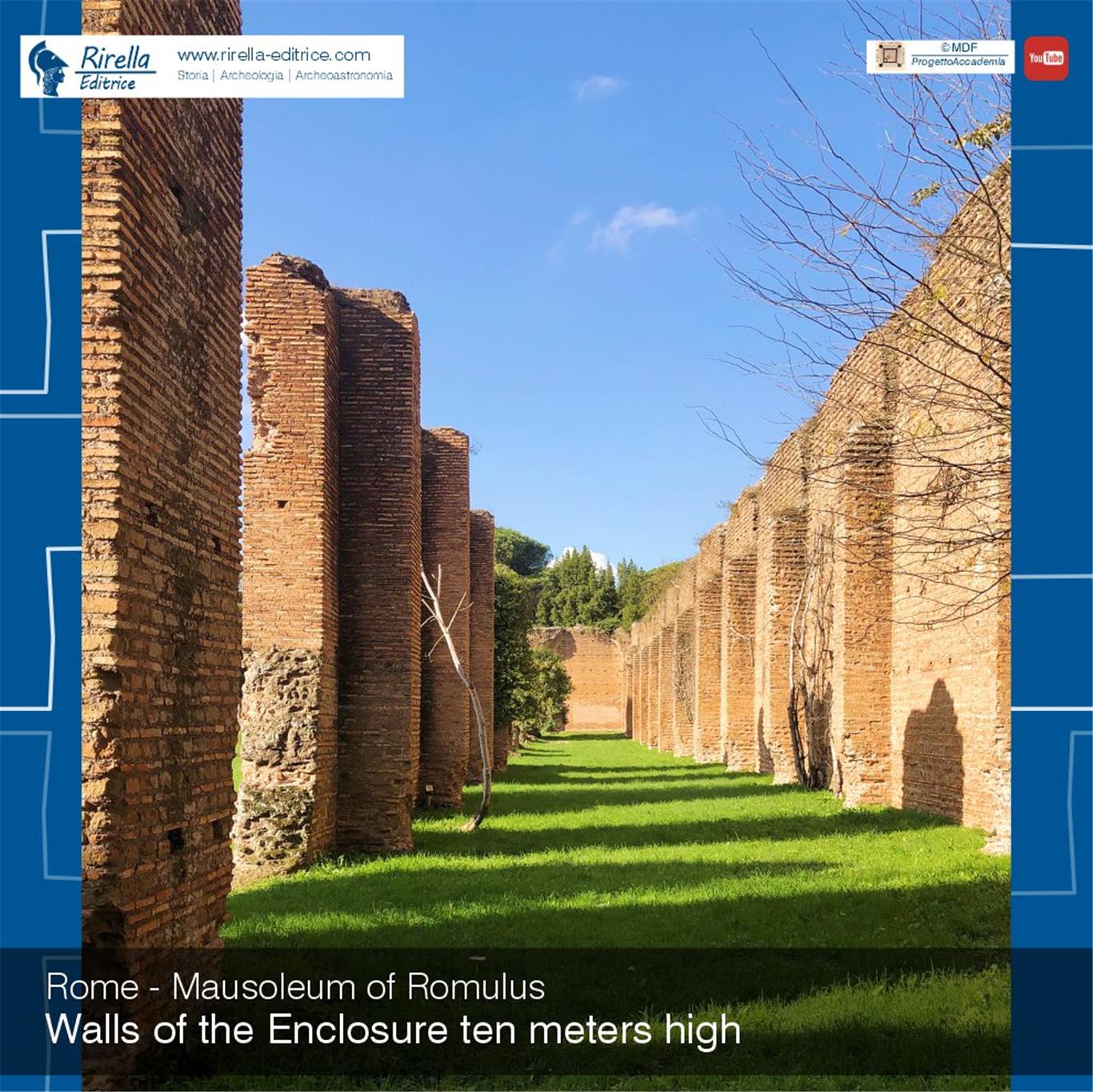 The Mausoleum of Romulus is located inside a large squared enclosure which was a "temenos", i.e. a sacred space. The perimeter walls are more than ten meters high, and inside there was a monumental portico with pillars, covered by cross vaults that have collapsed.