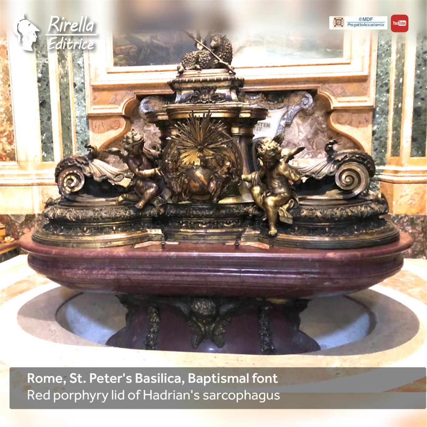 Only the lid has been preserved, which in the 17th century was transformed into a baptismal font by Carlo Fontana, and is now located in St. Peter's Basilica.
