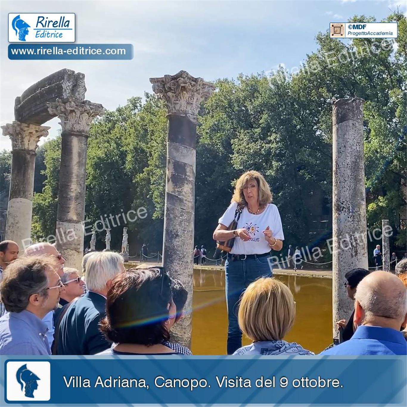 Guida d’eccezione la nostra socia Marina De Franceschini: archeologa e ricercatrice appassionata e dall’entusiasmo coinvolgente, Marina ha dedicato tanta parte dei suoi studi a questa costruzione di età imperiale, «un ricco complesso di edifici realizzati gradualmente (II secolo d.C.) ed estesi su una vasta area, che doveva coprire circa 120 ettari (per fare un confronto gli scavi di Pompei coprono un’area di 66 ettari, di cui circa 50 scavati), in una zona ricca di fonti d'acqua a pochi chilometri dal centro abitato di Tibur e 17 miglia romane dall’Urbs».
