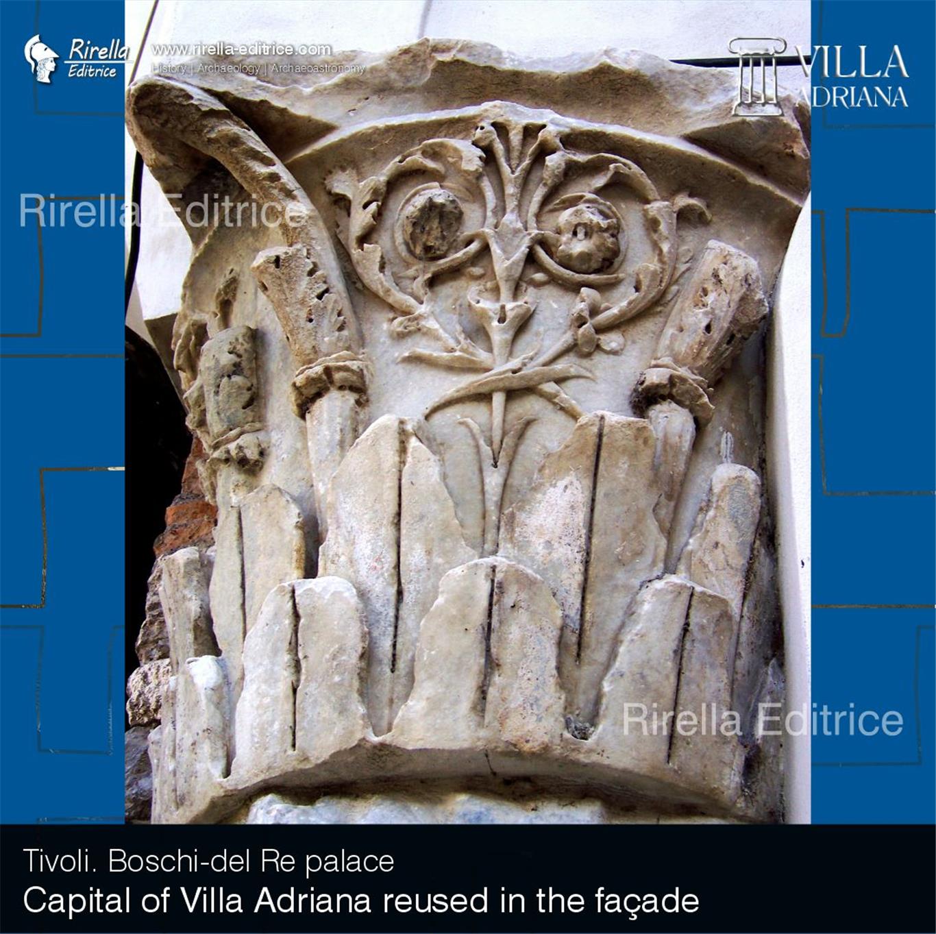 In the façade of the Boschi-Del Re palace, in the Piazza Palatina of Tivoli, columns, capitals and marbles have been inserted, which certainly come from Villa Adriana.