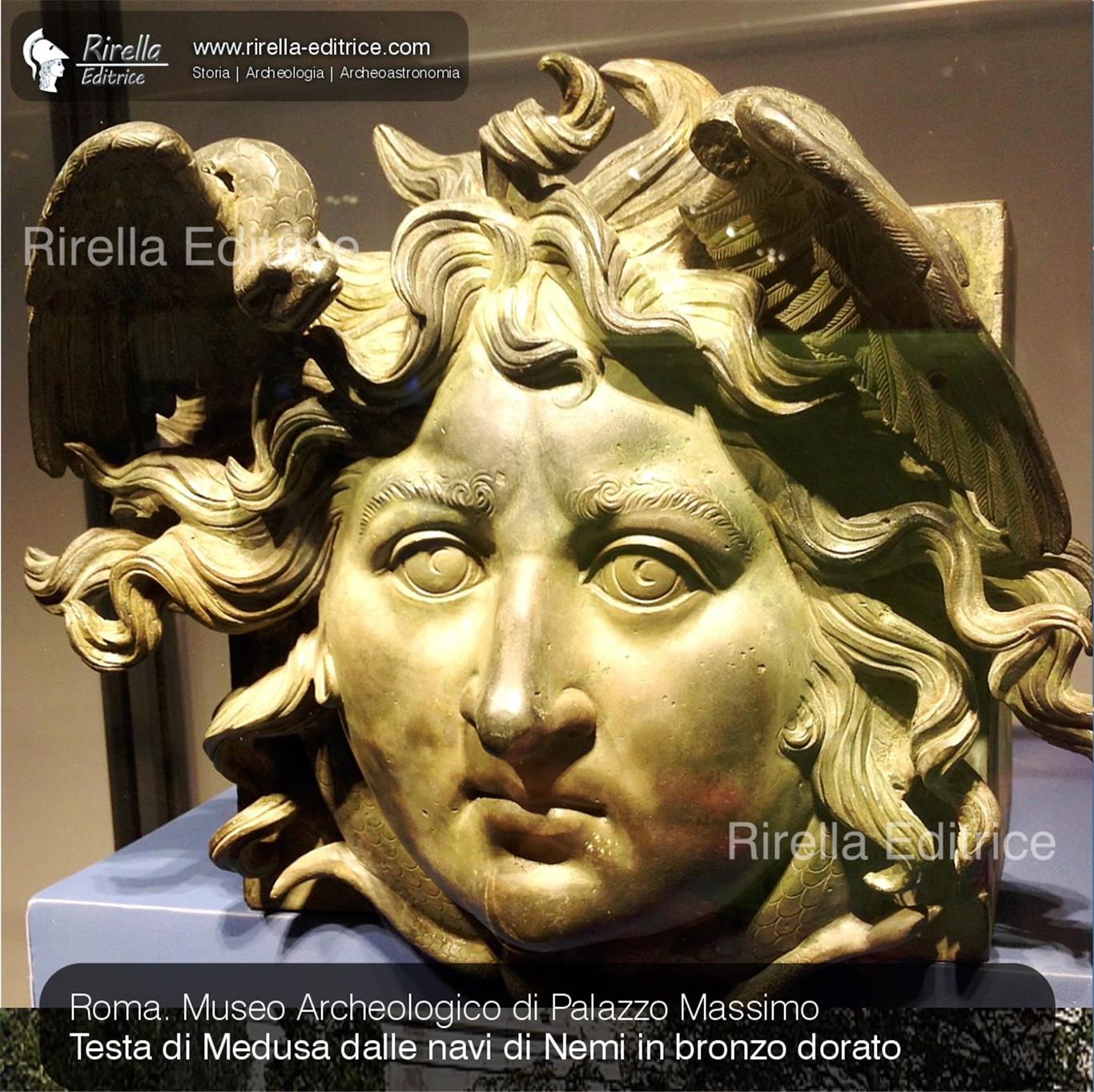 The magnificent gilded bronze heads that belonged to the roman ships of Nemi are now in the National Roman Museum of Palazzo Massimo at Rome. There are wild beasts, a Medusa, hands, and many other precious furnishings.