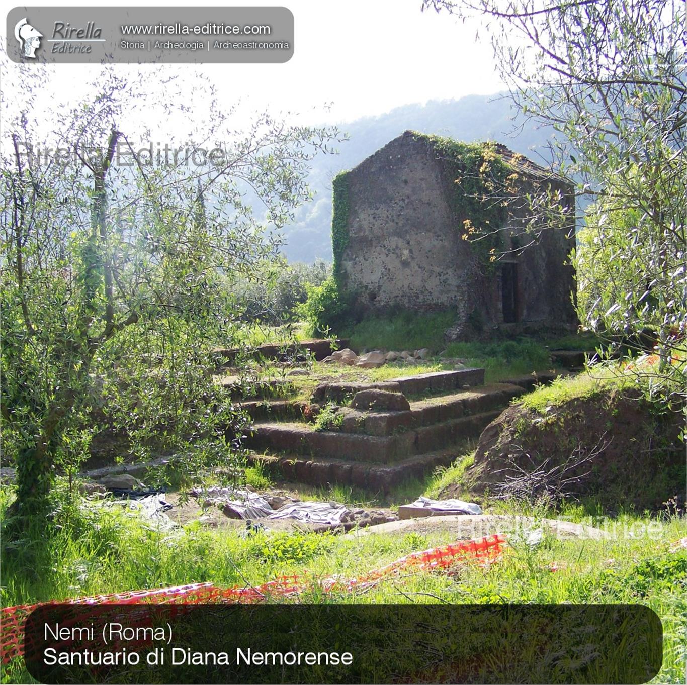 Lake Nemi is located southeast of Rome in the Colli Albani area. It was the site of an ancient pre-Roman sanctuary, later dedicated to the goddess Diana Aricina or Diana Nemorensis.