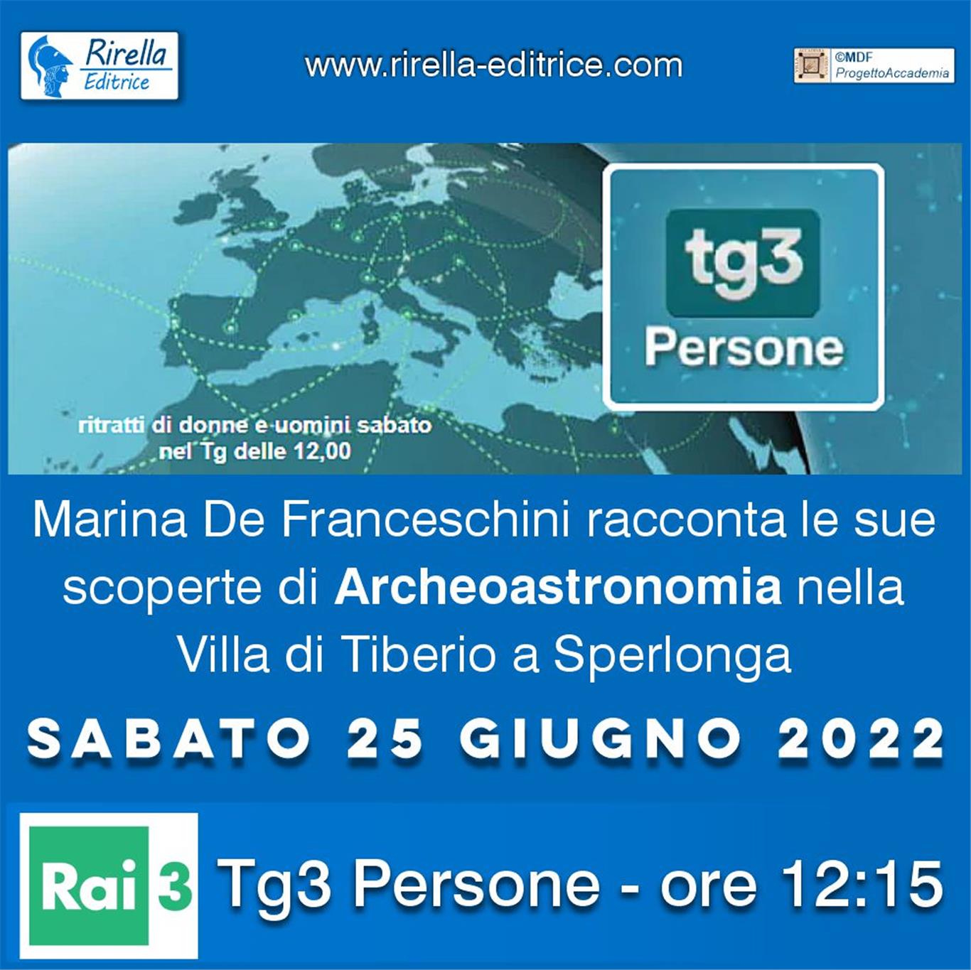 ‼️ SABATO 25 GIUGNO ore 12:15 - RAI TG3 - PERSONE - Marina De Franceschini