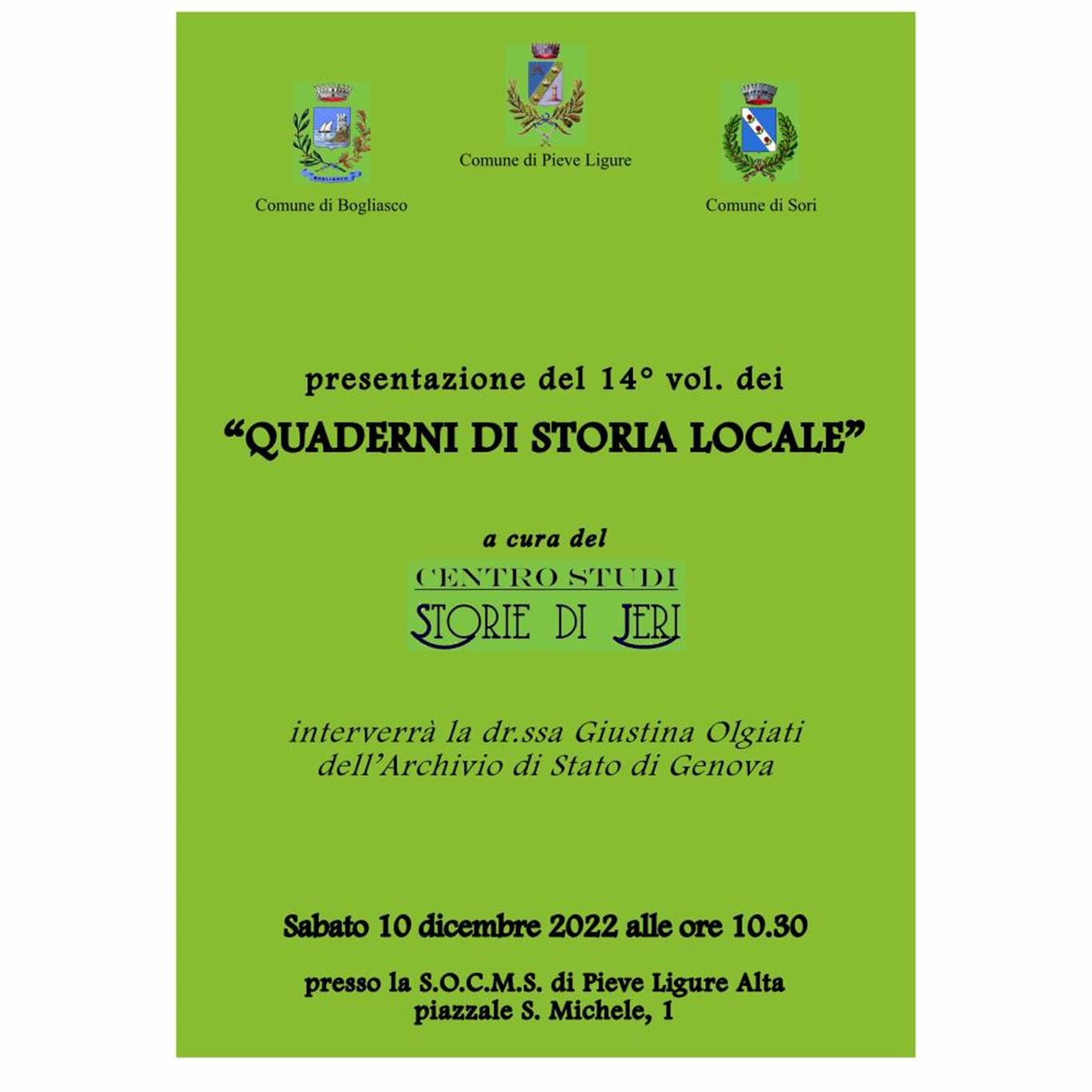 Presentazione del XIV Volume dei "QUADERNI DI STORIA LOCALE"