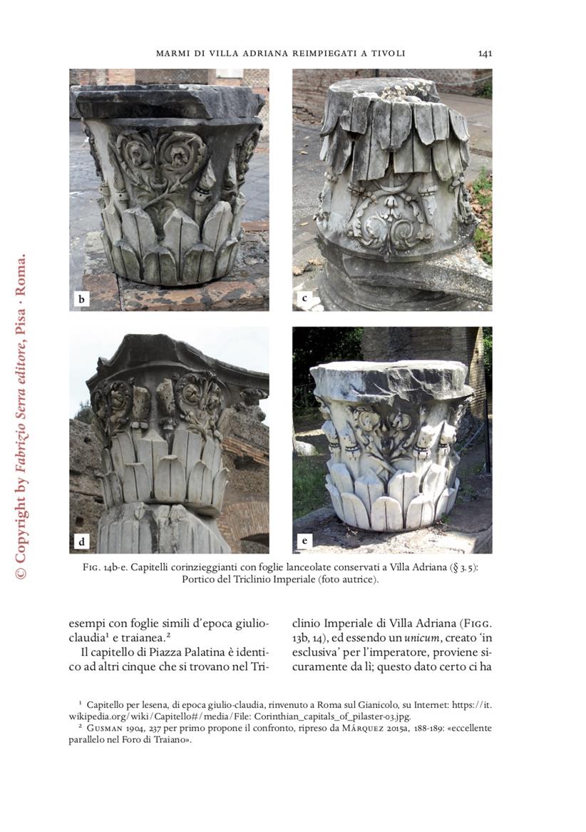 I MARMI ARCHITETTONICI DI VILLA ADRIANA «MURATI PER LE CASE DI TIVOLI»